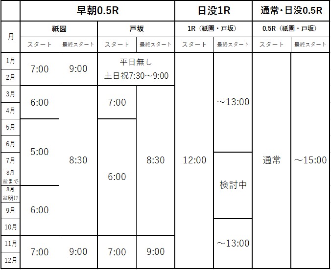 ※日没プレーは、現在(火・水・木・土・日)の