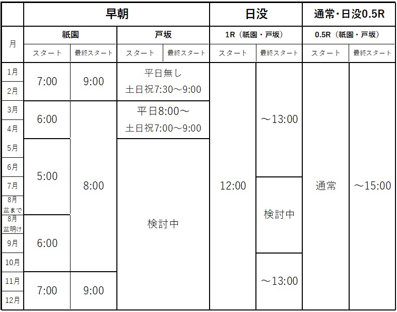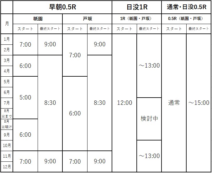※日没時間の関係により、最終時間が変更になる場合もございます